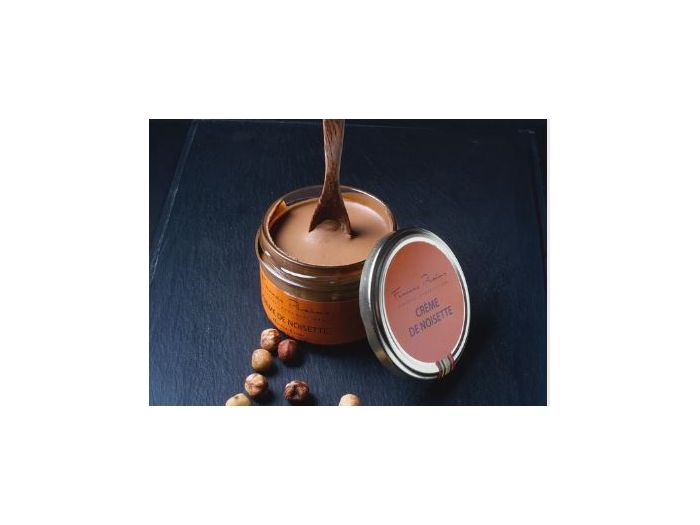 La chocolaterie Pralus nous propose une savoureuse pâte à tartiner de rêve. Une crème de noisettes du Piémont et d'amandes Valencia dans un pot authentique. Composition :Noisettes grillées,sucre, amandes grillées, fèves de cacao beurre de cacao, lécithine de soja sans OGM. Fabriqué dans un atelier utilisant : autres fruits à coque,et lait. Garantie sans huile de palme. A conserver à l'abri de la chaleur, de l'humidité et des odeurs. Valeurs nutritionnelles pour 100g : Energie 582 kcal/2422kJ, matières grasses 41g dont acides gras saturés 7.5g, glucides 41g dont sucres 39g, protéines 11g, sel traces.