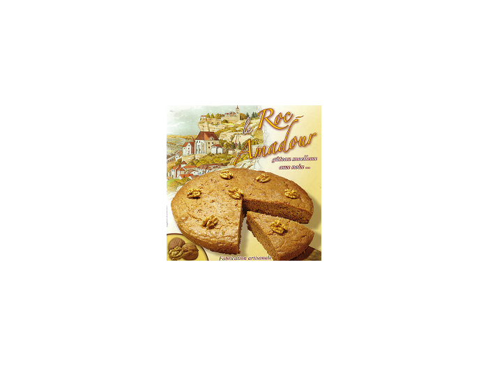 Ce gâteau gorgé de noix accompagne vos salades de fruits frais, votre crème anglaise, vos glaces ou des fruits rafraichis. Ce délicieux gâteau aux noix, sans colorant, ni conservateur, est fabriqué à Rocamadour dans une pâtisserie artisanale. Composition : Sucre, oeufs, noix 25%, beurre, farine (de blé), poudre à lever. Valeurs nutritionnelles pour 100 g : Energie 2177 kJ/523 kcal, matières grasses 35g dont acides gras saturés 12g, glucides 41g dont sucres 27g, fibres alimentaires 2.3g, protéines 9.8g, sel 0.61g.