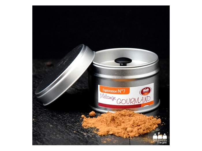 Initialement conçu pour réaliser un pain d'épices, ce mélange gourmand se marie à merveille avec des sablés, du vin chaud, un crumbre... Son parfum vous transportera en enfance.Une création de la maison Des épices à ma guise. Ingrédients : cannelle*, cardamone*, badiane*, clous de girofles*, coriandre graines*, anis*, gingembre*, macis* * produits issus de l'agriculture biologique AB