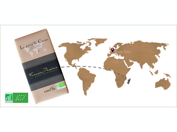 Le best seller des tablettes de la Maison Pralus de Roanne, le 100% criollo, Madagascar. Un nez frais, légèrement mentholé et fruité, fin en bouche, acidulé. Fèves de cacao provenant de la plantation de François Pralus à Madagascar sur l'ile de Nosy Be. Composition : Chocolat 100%cacao : fèves de cacao de Madagascar, pur beurre de cacao, lécithine de soja sans ogm. Fabriqué dans un atelier utilisant des fruits à coques ,noisettes, amandes ou de lait. Valeurs nutritionnelles pour 100g : 571 kJ/2364 kcal, matières grasses 44g dont acides gras saturés 28g, glucides 24g,dont sucres 2g, protéines 12g, sel 0.2g