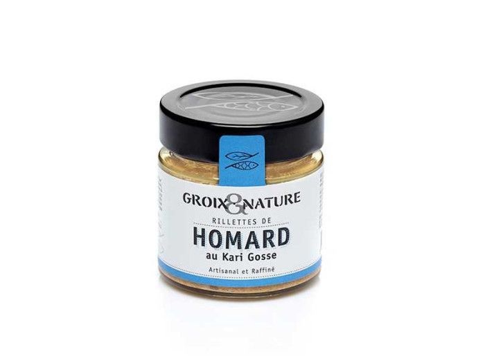 Groix et Nature vous propose un tartinable de homard au kari gosse un mélange d'épices : gingembre, girofle, curcuma, que vous pourrez déguster à l'apéro sur un pain de seigle ou des blinis. Composition : homard, 30%, crème liquide, lieu noir, noix de St Jacques, échalotes, carottes, beurre, protéines de lait, persil, sel, ail, kari gosse (0.04%) Traces éventuelles de mollusques. Valeurs nutritionnelles pour 100 g : Energie : 580kJ/139 kcal, matières grasses : 8.1g dont acides gras saturés : 5.6g, glucides : 4.5g dont sucres : 1.1g,protéines : 12g, sel : 1g.
